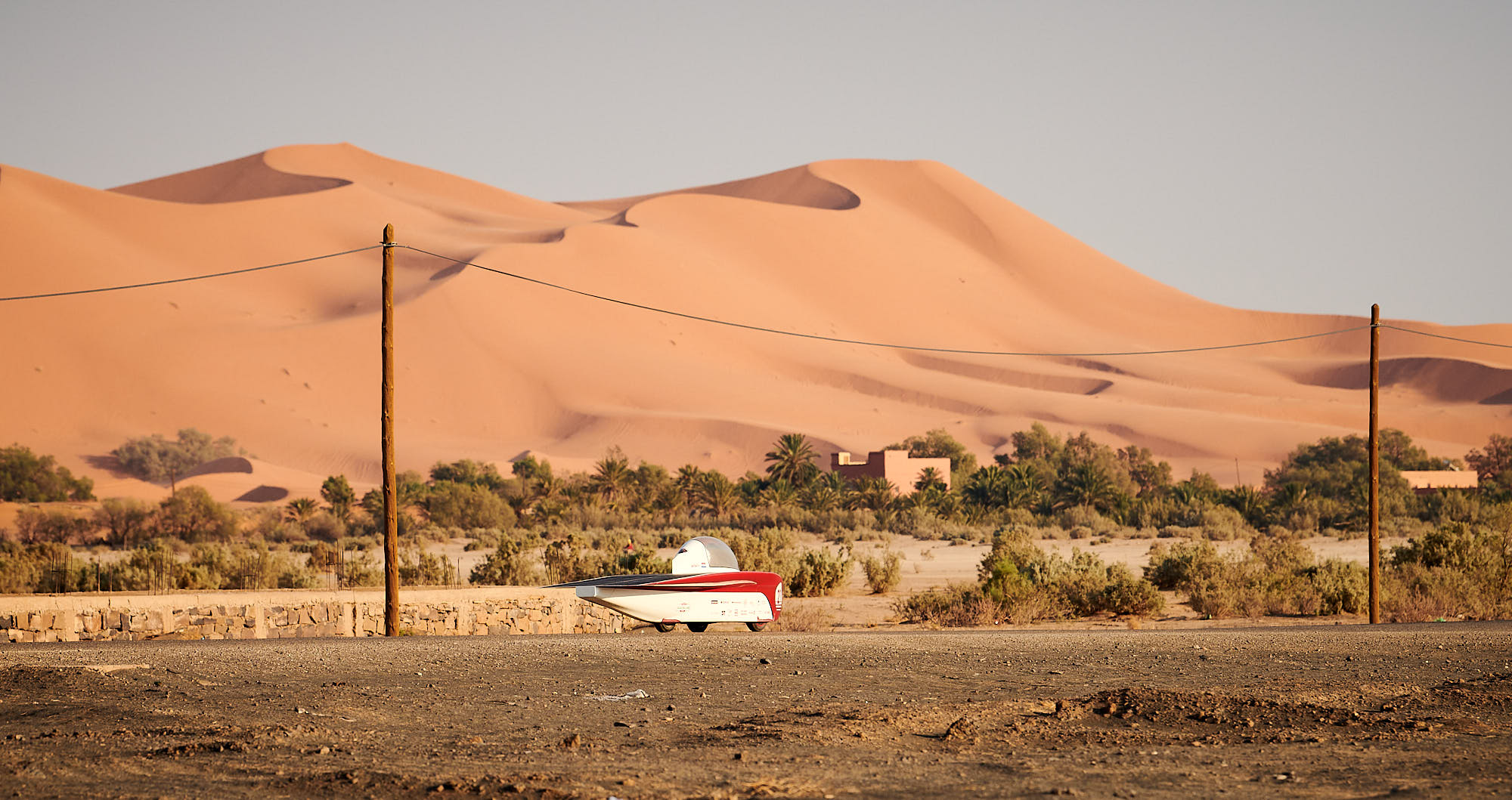 The solar car endured massive mountains, winding roads, chaotic villages right up to the Saharan desert. Over the course of 5 days it covered over 2500 kilometers, only using 1 fully charged battery and the power of the sun.